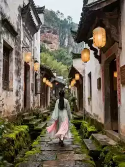Yuehua Street is a cultivation town on a cliff, with winding bluestone paths passing through Huizhou-style residences. The copper bells of the Taoist temples by the street ring softly in the mountain breeze. Wearing Hanfu and walking through alleys hung with lanterns, with skirt hems brushing moss-covered stone steps, every photo looks like a scene from a fairy palace. The Wangxianlou viewing platform offers a perfect photo spot; on clear days, Xianglu Peak looks like a censer, and on misty days, the Danxia red rocks appear faintly in the sea of clouds, resembling the Penglai fairy mountain in xianxia dramas.