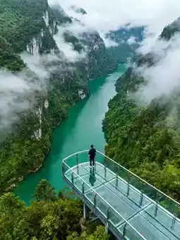 The suspended glass viewing platform at Ada Terrace is not to be missed. Below is emerald river water, and in the distance, the nine-layered canyon stretches. When mist rises, it feels like standing on the clouds. If you have the stamina, hiking the "One Line Sky" route is recommended. The narrow valley path only allows one person at a time; looking up, you see a "line opening the sky," and all you hear are water and birdsong, thrilling like exploring a xianxia secret realm.