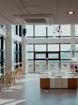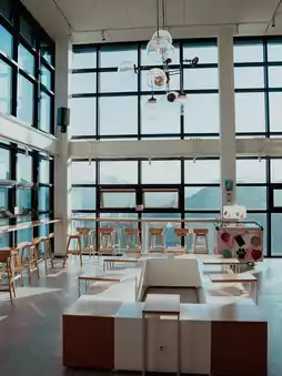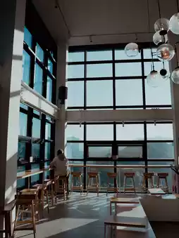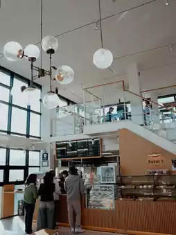 • Spacious indoor seating with high ceilings for an open atmosphere, and the large windows allow you to enjoy the ambiance regardless of the weather.