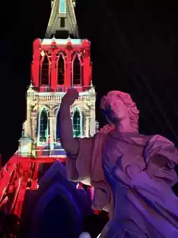5️⃣Wedding Manor stop isn't where you watch the light show, need to walk about 300m further. Chapel alone isn't photogenic, get spots near the sculptures for better photos