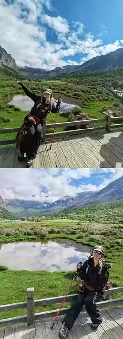 We entered the scenic area right at opening time when crowds were thin, allowing us to capture perfect shots of people-free landscapes. Originally planning just the short route (and with the long route closed until our visit day), we were surprised when the long route opened on our visit day! With no altitude sickness symptoms, we spontaneously decided to complete the most spectacular routes to Milk Lake and Five-Color Lake. Staying at the "Songtsam Yading Lodge" inside the park saved us 40+ minutes of travel time compared to regular visitors. From the hotel entrance, we took a village shuttle bus for about 15 minutes to Zhaguanbeng to begin our hiking adventure. After reaching Chonggu Temple/Chonggu Meadow (where you can buy tickets for the electric cart to Luorong Pasture), we walked around Luorong Pasture before following signs deeper into the trails to Milk Lake and Five-Color Lake.