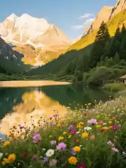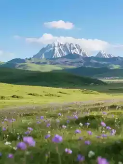 🌸 Spring (April-May): Wild flower seas beneath snowy mountains
