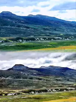 The plateau meadows along the highway stretch as far as the eye can see.