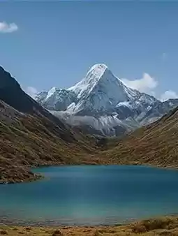 • Sacred Peaks – The holy mountains of Chenresig and Jambeyang tower above, creating a surreal backdrop.