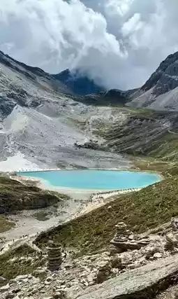 【Go left】A slightly gentler but longer route to Milk Lake (most people choose this), then climb further to reach Five Color Lake.
