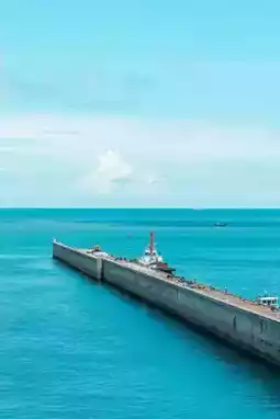 ▪️ Blue Bridge Beach shot "Steel frame bridge and gradient sea"! Social post caption: "Like collector on Moments"