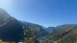 Blue skies and white clouds☁️ complement the endless snowy mountains
