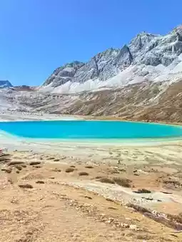 Adjacent to Milk Lake, the lake surface displays five colors as the light changes. It's recommended to visit when the sun is strong at noon. The altitude here is even higher, so be mindful of altitude sickness💊.