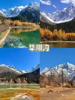 - Bipenggou: Snowy mountains, lakes, and colorful forests intertwine; every frame is a stunning landscape painting.