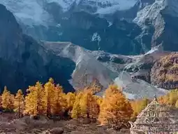 📸 Insta-worthy Angles: Snap shots with autumn woods and traditional Tibetan buildings in the foreground, Xiannai Ri’s snowy crown glowing in the distance. The bridge over the stream offers magical sunrise light; Pearl Sea’s mirrored waters serve up epic glacier reflections.