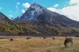 After breakfast, enter the Yading Scenic Area and take the scenic area's eco-friendly car (fee included). After about 1 hour, you will arrive at the paradise Yading Village. Then, at Zhaguanbeng, you will change to the scenic area's sightseeing electric car and arrive at the Ading alpine ranch Luolong Cattle Farm. This is the best place to view the three sacred mountains, Xianuoduoji, Yangmaiyong and Xiannairi, at the same time. The three sacred mountains are in the shape of a Chinese character "品" and are in full view. The blue sky, grassland, sea of flowers, snow-capped mountains and antelopes make people feel like they are in a dreamland.