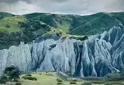 🚁Aerial view: gray rock formations with maximum mystery value