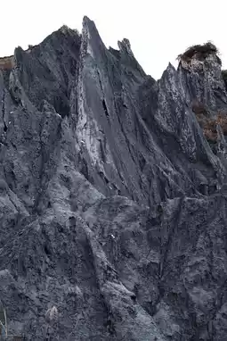 After the snow, "Little Moxi" seemed muted. The black mylonite mountain body pierced out from the gray-white world, its edges sharp as if chopped by a giant axe. Snow remained embedded in the rock crevices, the black and white contrast more primitive than the "filtered Mars" look of Moxi Park. The biggest surprise was no railings or boardwalks; we could step directly onto the rock surface—one step down, a crisp "crack" sound as the snow crust broke, revealing the shiny black beneath, like the earth had been waxed. My companion Xiao Zhuo flew the drone up to 120 meters; the camera dove down, showing the four of us like grains of salt scattered on an inkstone, with the background resembling coal slag rice paper crumpled by giant hands.