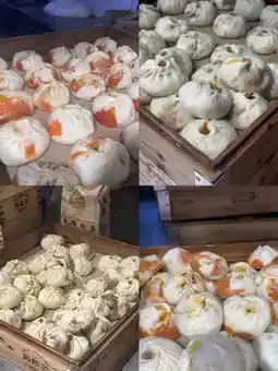 Traditional Snack: Yellow rice flour wrapped around sweet bean paste, steamed until soft, sticky, and sweet. Can be served with egg drop soup.