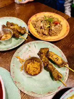 starter can choose satay chicken skewers or homemade spring rolls, quite large 👍🏻
