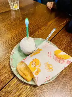 It turns out that birthday is the menu to choose a dessert, he will help you insert candles and sing birthday song🥳, the twins' father chose Banoffee Fritter🍨 £6.5 banana filling pancakes, the twins liked it, said it was delicious😋. I think the coconut ice cream is great😍.