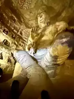 However, the most famous one now is the internet-famous Grotto 19, where you can take a high-five with the Bodhisattva, or ask Him some funny questions to make a kuso picture. There are also 20 caves with Bodhisattvas’ side faces, which are super beautiful when the light and shadow are right. Highly recommended!