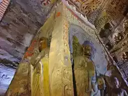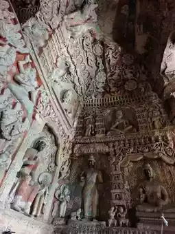 The Yungang Grottoes are located in Datong City, Shanxi Province. Carving began in the third year of the Huangshi era of the Northern Wei Dynasty (398 AD). It is the first product in China combining imperial political power with religious belief, and also the first grotto primarily featuring stone carvings, pioneering large-scale stone carving art in China. Although the Mogao Caves in Dunhuang and the Maijishan Grottoes in Tianshui were carved earlier than the Yungang Grottoes, they mainly feature clay sculptures and murals. The Yungang Grottoes integrate artistic styles from various Western Regions, reflecting cultural exchanges between the East and West. With Emperor Xiaowen of Northern Wei, Tuoba Hong (Yuan Hong), leading a southern campaign and relocating the capital to Luoyang, larger-scale grotto carving shifted to Longmen, pushing Chinese stone carving art to its peak.