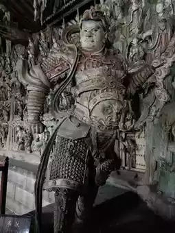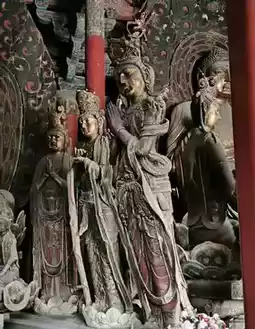 ✅ Statues: All statues inside are from the Ming dynasty. The main statue is a gilded wooden Vairocana Buddha with a solemn expression; the two attendant bodhisattvas hold ritual implements and lean slightly; the twenty heavenly generals are intricately carved with distinct faces.