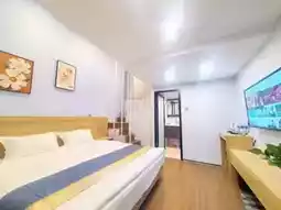 Details are spot on: warm-toned lighting means no glare when using your phone or checking travel guides at night; there’s a small sofa and tea table by the window, perfect for sipping hot tea and relaxing—a little happiness during your trip.