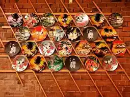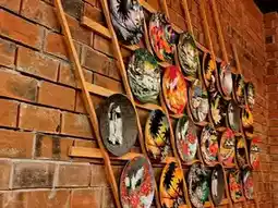 The restaurant's decor stands out with Vietnamese cultural art patterns arranged on exposed brick walls, creating a warm and unique atmosphere.