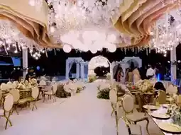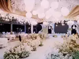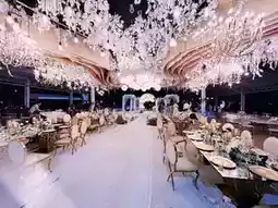 Stepping into the venue, you're surrounded by a sea of chandeliers and flowers, as if entering a romantic fairyland.