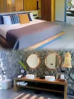 🌊 Infinity pool: The 35-meter-long infinity pool is amazing and perfect for taking photos 📸. The poolside is a great place to watch the sunset. In the evening, the afterglow of the sunset shines on the water, creating a beautiful scene 🌅.