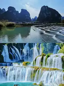 • Detian Transnational Waterfall: A 5A-rated scenic spot, this magnificent waterfall straddles the border between China and Vietnam. It's the largest transnational waterfall in Asia, with an average annual water flow about three times that of Huangguoshu Waterfall in Guizhou. It was also a filming location for the popular Chinese drama *The Journey of Flower*. Take a bamboo raft to experience the waterfall up close.