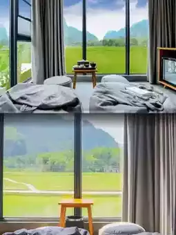 🌷「Mountain views from bed」Floor-to-ceiling windows+spacious terrace! Wake to moving landscape paintings as bamboo rafts⛵ glide past your window—finally understanding ancient poets' pastoral bliss.