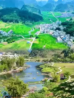 π Mingshi Pastoral: Drift on a bamboo raft through the karst landscape painting, and remember to try authentic bamboo tube rice at local farmhouses (many around Mingshi Village)