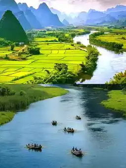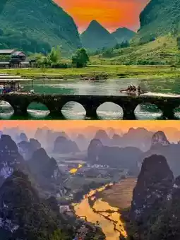 - Mingshi Pastoral: Cycle along rice field paths with karst peaks on both sides - every photo looks like a wallpaper. Floating on bamboo rafts feels like entering an ink painting.