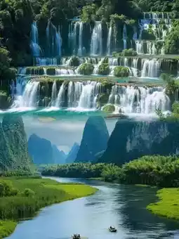 📍Detian Waterfall: Asia's largest transnational waterfall, take a bamboo raft to experience its power up close (Address: Detian Village, Shuolong Town, Daxin County)