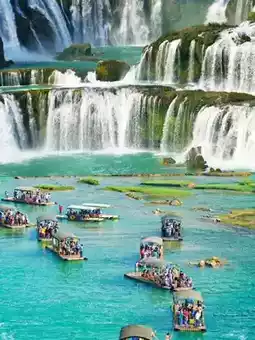 ✨Morning drive along the picturesque Hena Highway, afternoon visit to Detian Transnational Waterfall spanning China and Vietnam, bamboo raft ride, enjoy waterfall-view coffee ☕, photo opportunities 📸~ Evening check-in at Mingshi Nali Hotel 🏨, experience a hidden pastoral paradise