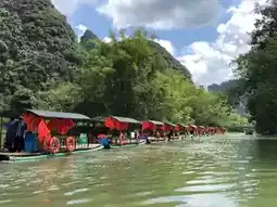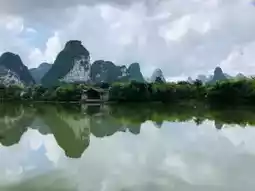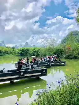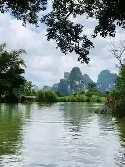 Mingshi Pastoral features classic karst landscapes with towering peaks, emerald bamboo-lined banks, and the winding Mingshi River. Drifting downstream on a bamboo raft, you’ll pass uniquely shaped mountains—some resembling camels, others like fairies—reflected perfectly on the mirror-like water. The scene captures the poetic charm of "floating on water while wandering in a painting," rivaling even Guilin’s beauty.