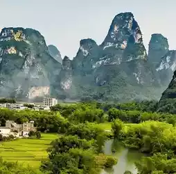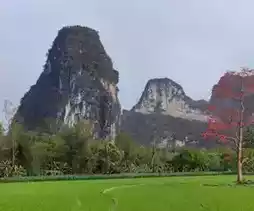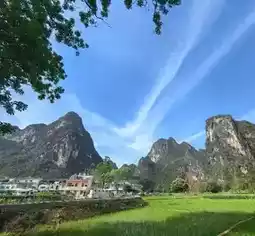 The peak forest resembles bamboo shoots, the clear water winds gently, and the rice fields spread like a green carpet, outlining a landscape painting comparable to Guilin. The Mingshi River reflects the karst peak forest, and when drifting on a bamboo raft, the boat seems to sail through a painting, with mist swirling like a fairyland. The TV drama "The Journey of Flower" was also filmed here.
