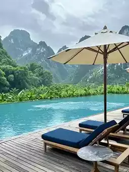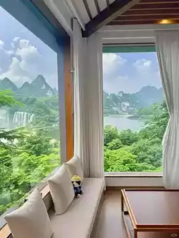 A treasure hidden deep in Mingshi countryside, close to Detian Transnational Waterfall. The room windows framed karst peaks like living paintings for the kids, with tropical jungle wrapping the resort - my child said it felt like living in a forest castle 🏰