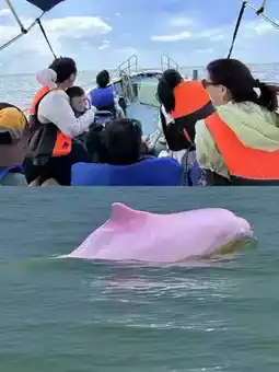 ✔️ Sanniang Bay in Qinzhou—Chasing dolphins🐬 out at sea was pure joy! There’s a 90% chance of spotting them throughout the year. When pink dolphins suddenly leapt out of the water, all the kids on the boat screamed with excitement😝, and we couldn’t stop taking photos until our phone storage was full!