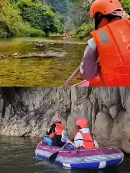 ✔️ Gulongshan Grand Canyon—You absolutely have to try rafting with the kids! Free-floating rafting is so much fun—you paddle your own boat🚣 and can stop whenever you want. As we passed through caves, we slowed down to enjoy the cool breeze, and the kids were mesmerized by the stalactites, staring at them for ages.