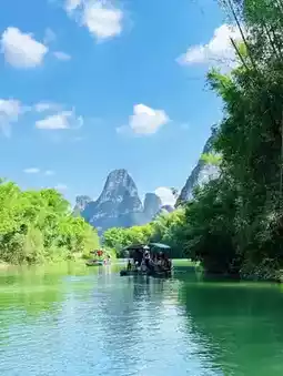 It's about a two-hour drive from Nanning to get here. As soon as you enter the scenic area, you're surrounded by lush greenery—the karst hills look like green bamboo shoots sprouting from the ground, and the Mingshi River winds around the mountains, its water so clear and green you can see the stones beneath. I found out that this river actually flows from Vietnam, and the 8 kilometers within the scenic area hold the most exquisite views.