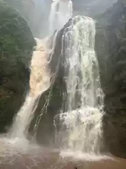 💖In different seasons, Santan Waterfalls show completely different beauties. During the rainy season, the waterfalls are majestic and grand, like a dragon emerging from the sea or thousands of horses galloping, with roaring waves audible from a kilometer away, breathtakingly powerful. In winter and spring, the waterfall water looks like three white silk ribbons hanging between the mountains, with rolling pearls and shattered jade falling into the deep pools, like ornaments or pearl curtains. "The waterfall plunges straight down three thousand feet, as if the Milky Way is falling from the Ninth Heaven." The waterfalls cascade down, stirring countless jade-like water droplets, and the shimmering emerald waves in the deep pools reflect the green mountains on both sides like a precious mirror.