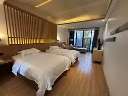 Howard Johnson Huashuiwan Hot Spring Resort is a 5-diamond hotel. The hotel is mainly composed of two-story villa buildings. Overall, it should be the best hotel in Huashuiwan. The overall environment of the hotel is indeed more of a holiday atmosphere. The lobby is not particularly large, but it is relatively warm. The rooms are mainly divided into two types: Bieyuan and Shanju. The Bieyuan rooms were decorated earlier and have a small courtyard. The Shanju rooms are relatively larger and have better lighting. The second floor of the Shanju rooms has a balcony with a wider view. However, the Shanju and Bieyuan rooms are relatively far apart, so it is best to choose the same type of room when choosing this hotel. The hot spring of the hotel is rebuilt from the old hot spring of Sakura Hotel. The hot spring pool and area are not as large as the China Railway Hot Spring, but the water quality is good.
