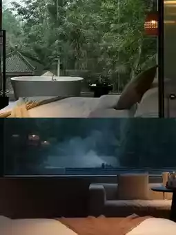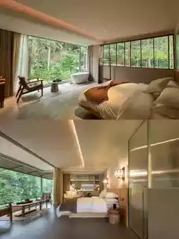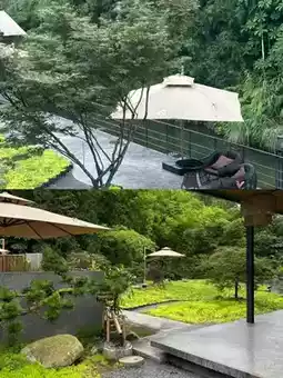 As soon as I stepped into the homestay, I was deeply attracted by its Japanese style! The gray tiles and white walls, wooden structure, and warm yellow lighting create a cozy and peaceful atmosphere. The room design is very stylish, with large floor-to-ceiling windows that allow plenty of natural light to enter. You can enjoy the mountain view outside while lying in bed. What surprised me the most was that the room has its own hot spring pool, which is super private! Imagine soaking in the steaming hot spring as night falls, with the starry sky above and the quiet mountains and forests around you. The fatigue of the day disappears with the rising steam~ 🛁🌌