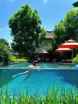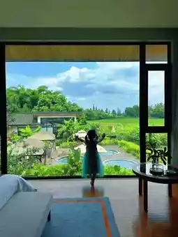 ✨The guesthouse🏨 is located in a large rice field, surrounded by banana groves, flower clusters, and trees. The trampolines and gym in the fields let you fully enjoy nature🍃