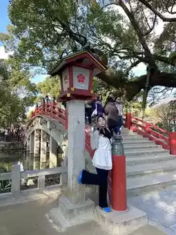 Dazaifu is located in a place that can be visited in an hour by train from downtown Fukuoka, so it is a good place to visit for a light suburban trip. There are many souvenir shops, so it is fun to look around the shopping streets, and it is especially famous for the Starbucks with wooden interior. Walk all the way along the approach to the shopping streets, pet the bull's head, throw a 5 yen coin, and make a wish. In particular, be sure to take a picture at the red bridge leading to the shrine. It is so pretty with the pond(?) that it really feels like Japan. 🇯🇵