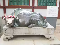 visitors can pray to the bronze cow statue and take photos here 📸