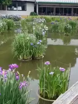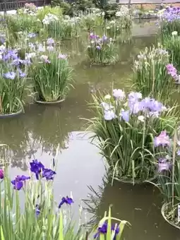 There are also irises in the pond, which come in various colors and are worth stopping to admire.