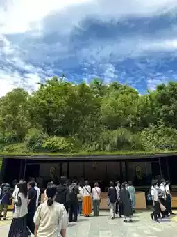 when I actually saw the temporary shrine, I was amazed by its modern design that blends in with nature,