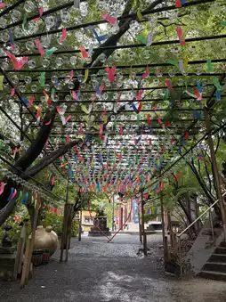 This temple is located in Ogori City, Fukuoka Prefecture. It is said to have been built by Gyoki Bosatsu around 730 AD. After the head priest brought back a jade frog from China, the number of frog ornaments increased. Currently, there are more than 2,000 frogs lined up, and it is popular with a wide range of generations, especially children. Locally, it is better known by the nickname Frog Temple than by its official name Nyoirinji Temple. Many people visit the temple to pray for road safety and good fortune, with puns such as "safe frog" and "money frog".