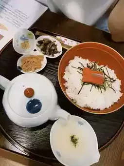 We ate a mentaiko rice bowl set, a famous Fukuoka delicacy.