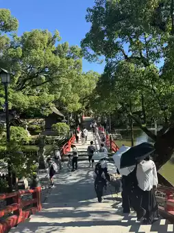 Dazaifu Tenmangu Shrine, a nationally renowned shrine dedicated to Sugawara no Michizane, the god of learning, is surrounded by a solemn atmosphere and abundant nature. The approach to the shrine is lined with local specialties, such as umegae mochi, making it a delight to simply stroll through. The main hall's beautiful vermilion-lacquered architecture is impressive, and the grounds are filled with plum trees, allowing visitors to enjoy the changing scenery throughout the seasons. Another attraction is the "water fortune-telling" service available in the summer, a refreshing experience. While bustling with people praying for academic success, this shrine also offers a calming atmosphere.